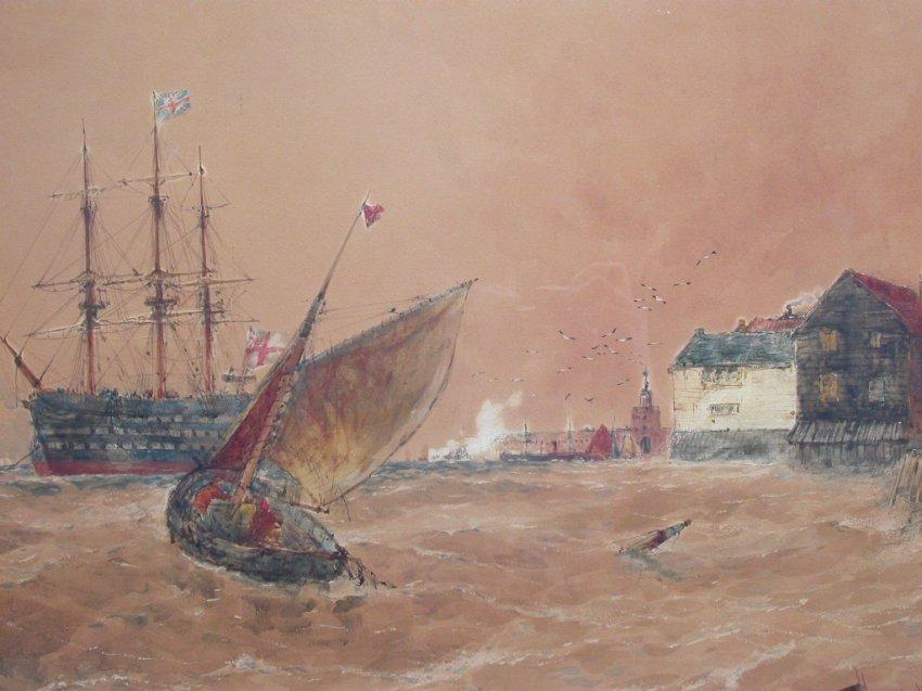 LOT 58 Watercolour signed T. Bush Hardy 1897, 16" x 23", "Portsmouth harbour". Estimate: $2,000 - $3,000 Auction Date: Monday, April 28 2003 at 7:00 PM