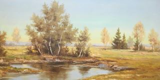 Oil on Masonite signed E. Embler, 15 1/2" x 31 1/2".