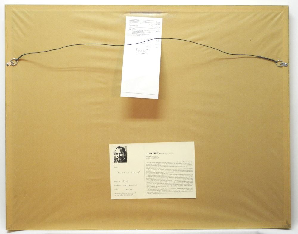 LOT 52 Watercolour signed (Harry) Heine, 13 1/4" x 20", "Hong Kong Harbour". Estimate: $300 - $400 Sold For: $300 Auction Date: Tuesday, March 22 2022 at 6:00 PM
