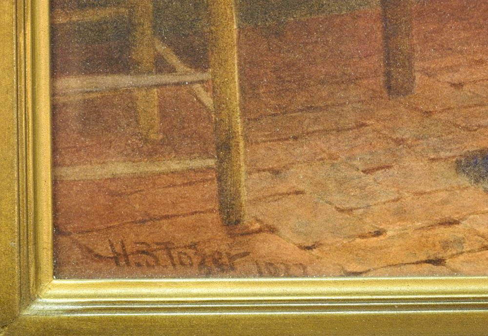 LOT 110 Watercolour Signed H.S.(Henry) Tozer 1927,8 5/8" 12 1/2", "Newspaper By The Fire", Frame as Found. Estimate: $300 - $400 Auction Date: Tuesday, March 22 2022 at 6:00 PM