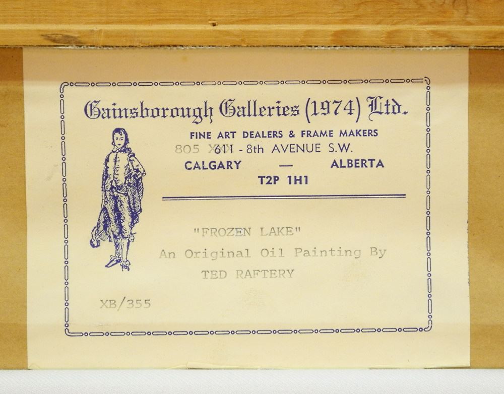 LOT 151 Oil on Canvas Signed Ref (Ted Raftery), 15 1/2" x 19 1/2", "Frozen Lake". Estimate: $300 - $500 Sold For: $220 Auction Date: Tuesday, March 22 2022 at 6:00 PM