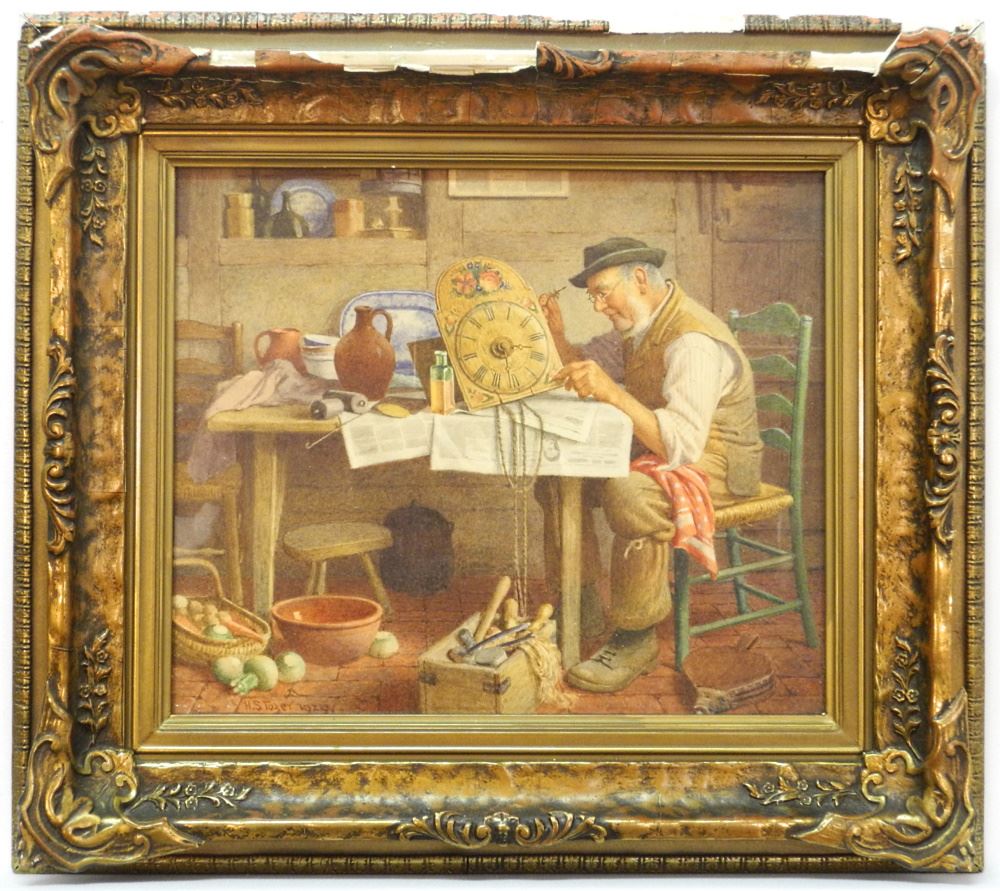 Watercolour Signed H.S.(Henry) Tozer 1929, 9 1/2" x 11 3/8", "The Clock Maker, Frame as Found.