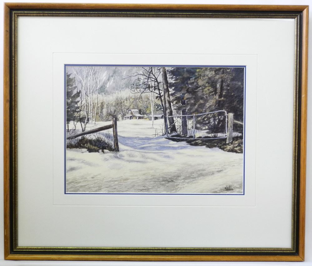 LOT 139 Watercolour Signed Geo Jenkins, 10" x 14", "Farmhouse in Snow". Estimate: $80 - $120 Sold For: $50 Auction Date: Tuesday, March 22 2022 at 6:00 PM