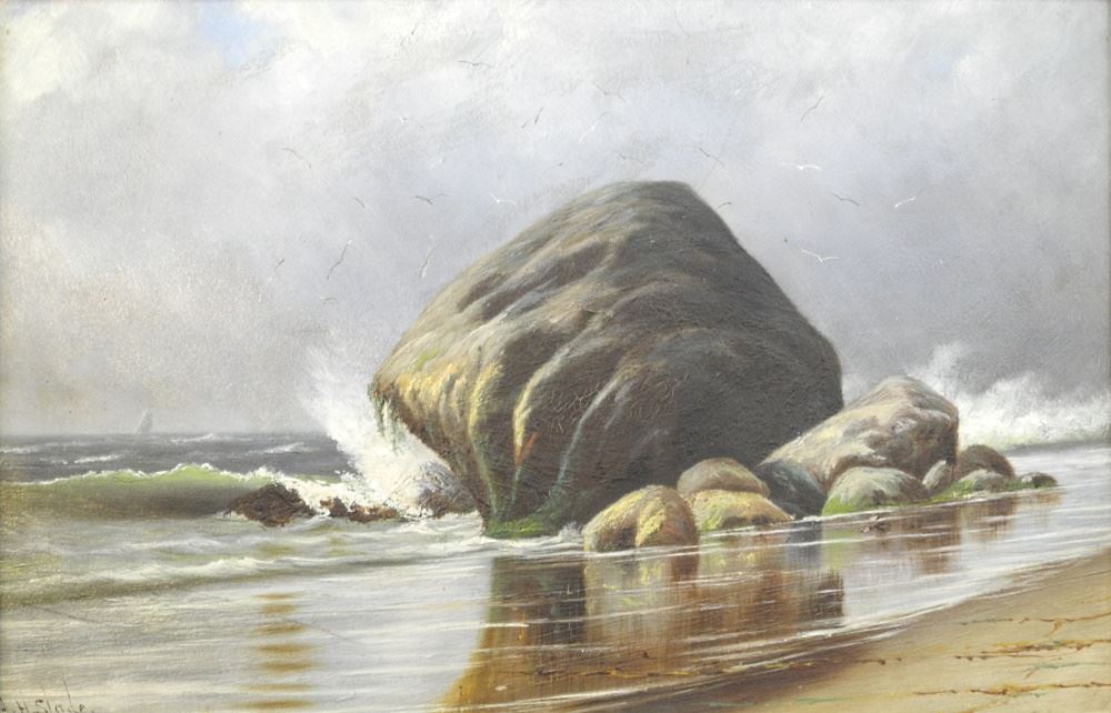 LOT 27 Oil Painting on Card Signed A.H. Slade, 12" x 18", "Californian Coast". Estimate: $500 - $1,000 Auction Date: Tuesday, March 22 2022 at 6:00 PM