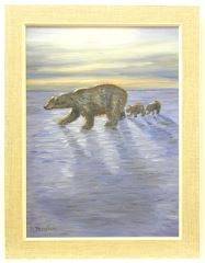 Oil on Board Signed M. Frasier, 15" x 11", "Polar Bears & Cubs".