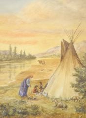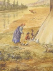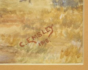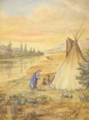 LOT 145 Watercolour Signed C. (Charles) Emsley 1910, 13 7/8" x 9 7/8", "Indigenous Encampment". Estimate: $200 - $400 Sold For: $180 Auction Date: Tuesday, March 22 2022 at 6:00 PM