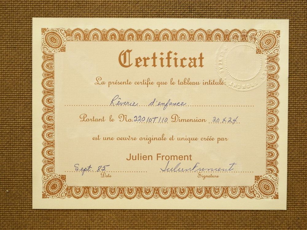 Oil on Masonite Signed Julien Froment, 24" x 20", "Reverie D' En France".