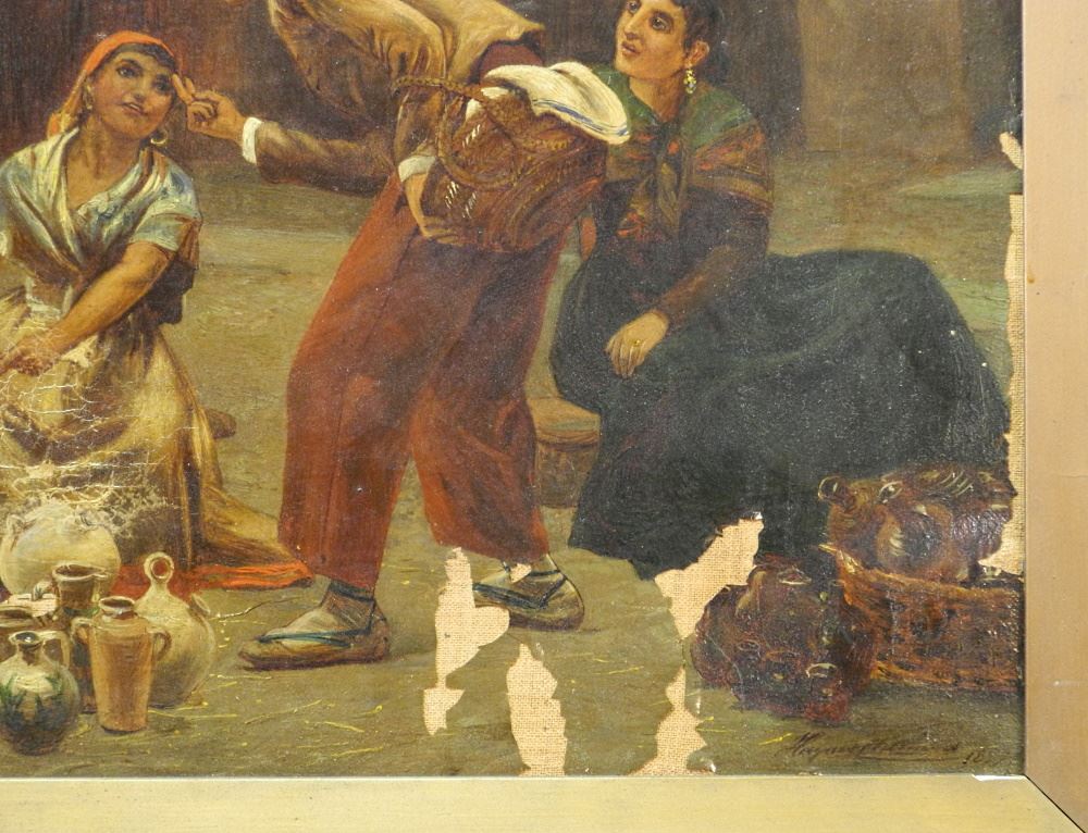 Oil on Canvas Signed John Haynes Williams 1879, 15" x 22", "Bargaining Crockery...".