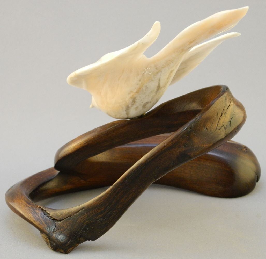 Alabaster on Wood Monogrammed J.C. (J. Christopher White), 6"x 7 1/4" x 6 3/4", "Speed & Light".