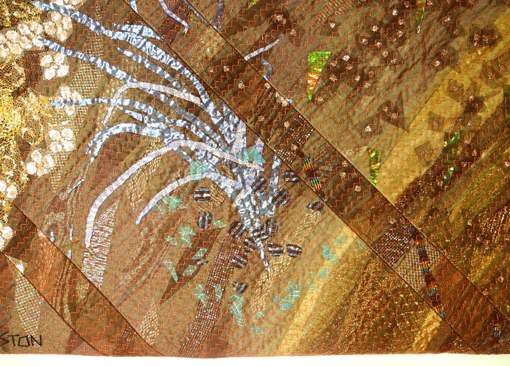 Tapestry Signed (Carole) Sabiston 1987, 44 1/2" x 49 1/2", "Raku Planet with Fireworks I".