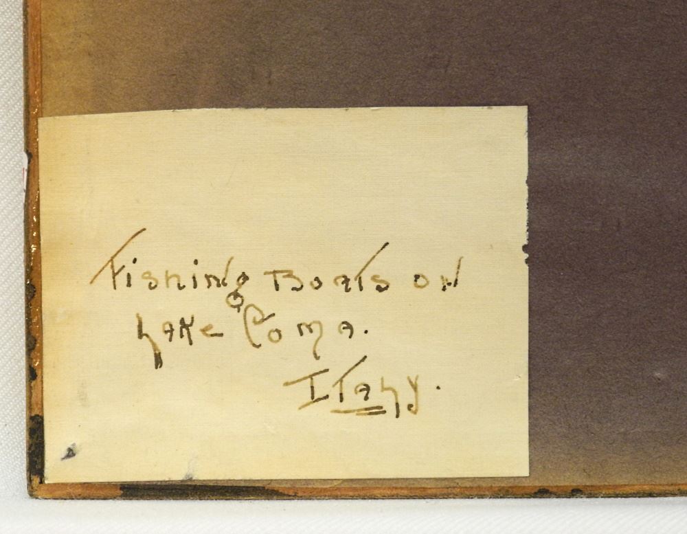 Watercolour signed E. Anderson, 8" x 6", "Fishing Boats on Lake Coma, Italy".