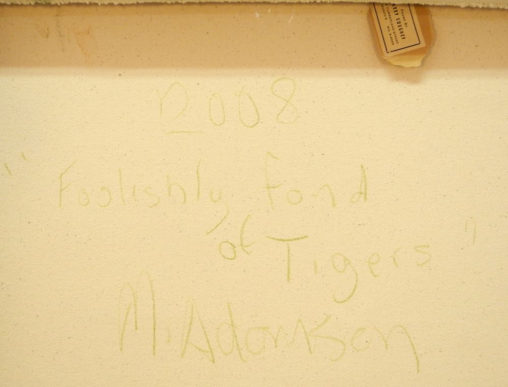Mixed Media signed M.(Michael) Adamson verso, 24" x 20", "Foolishly Fond of Tigers".