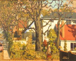 Oil on Board signed Adam Noonan '97, 15 7/8" x 20", "View from Oak Bay Ave up Yale Street".