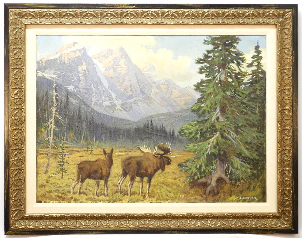 Oil on Canvas Signed M.(Matt) Lindstrom, 21 1/2" x 29 1/2", "Rocky Mountain Vista".