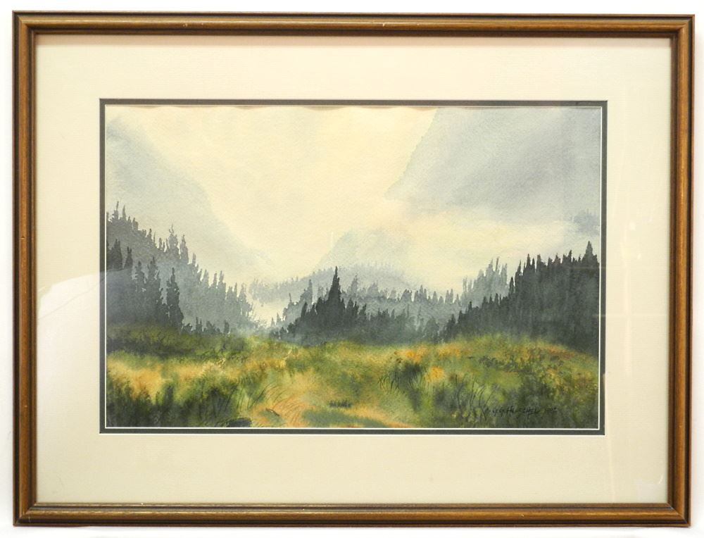 LOT 174 Watercolour Signed G.(Gordon) G. Henschel 1982, 12 1/2" x 19 1/4", "Landscape in Fog". Estimate: $140 - $240 Sold For: $100 Auction Date: Tuesday, September 13 2022 at 6:00 PM