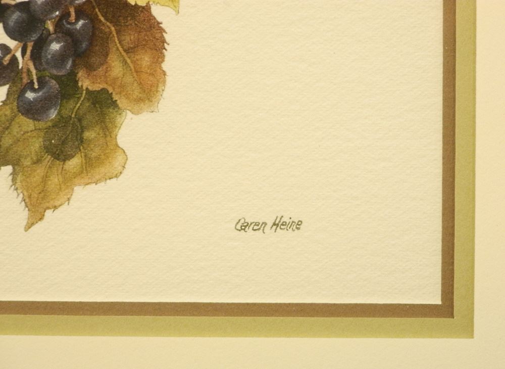 Watercolour Signed Caren Heine, 8 1/8" x 6 1/2", "Grapes".