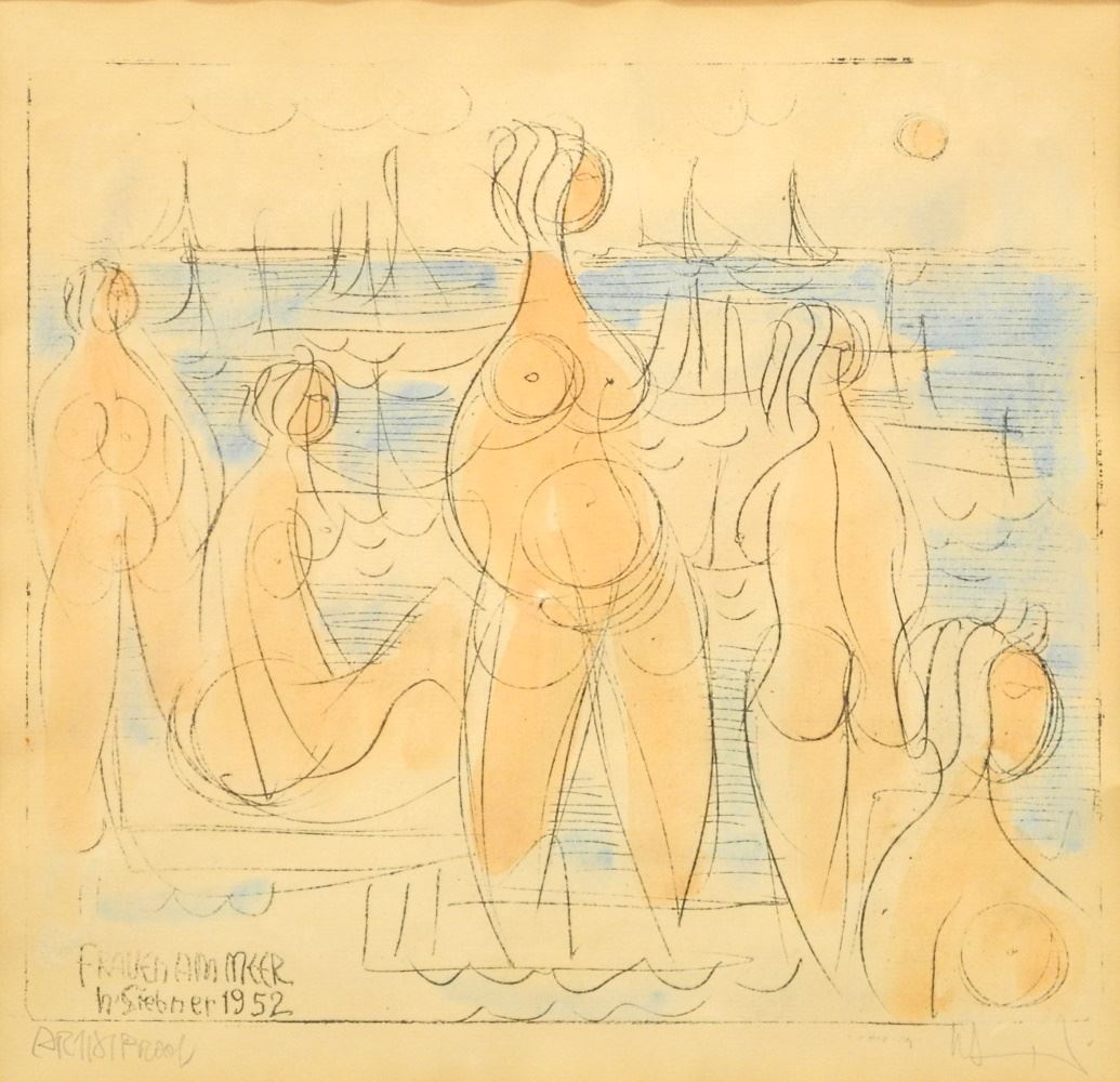 LOT 192 Artist Proof Signed H. Siebner, 10 1/2" x 11", "Frauen Am Meer 1952". Estimate: $150 - $200 Auction Date: Tuesday, September 13 2022 at 6:00 PM