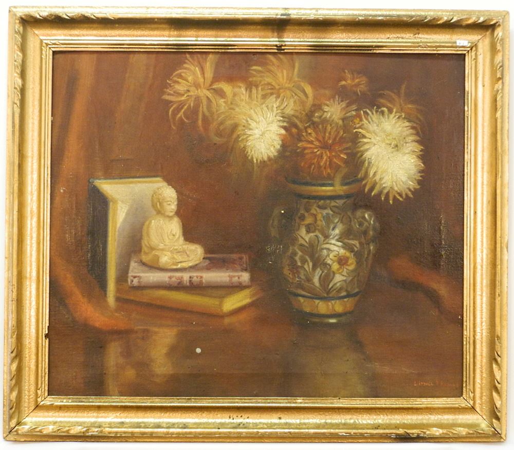 LOT 58 Oil on Canvas Signed Lionel (Arthur John) Thomas, 20" x 24", "Still Life with Vase of Flowers". Estimate: $100 - $200 Sold For: $90 Auction Date: Tuesday, September 13 2022 at 6:00 PM
