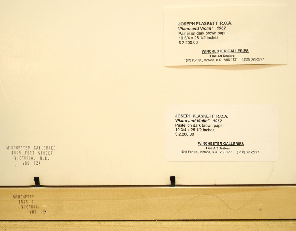 LOT 179 Pastel on Paper Signed (Joseph) Plaskett '63, 24 5/8" x 19", "Piano & Violin". Estimate: $260 - $360 Sold For: $340 Auction Date: Tuesday, September 13 2022 at 6:00 PM