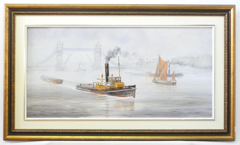 LOT 154 Oil on Canvas signed Malcolm C. Armstrong, 14" x 28", "A Foggy Day on the Thames", 1990 verso Estimate: $150 - $300 Sold For: $180 Auction Date: Tuesday, September 13 2022 at 6:00 PM
