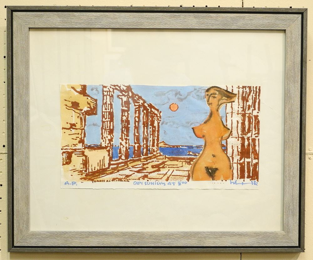 LOT 164 Serigraph with Collage signed H. (Herbert) Siebner '82, 8" x 15 1/2", "Cape Sunium at 5:00", AP. Estimate: $100 - $200 Sold For: $170 Auction Date: Tuesday, September 13 2022 at 6:00 PM