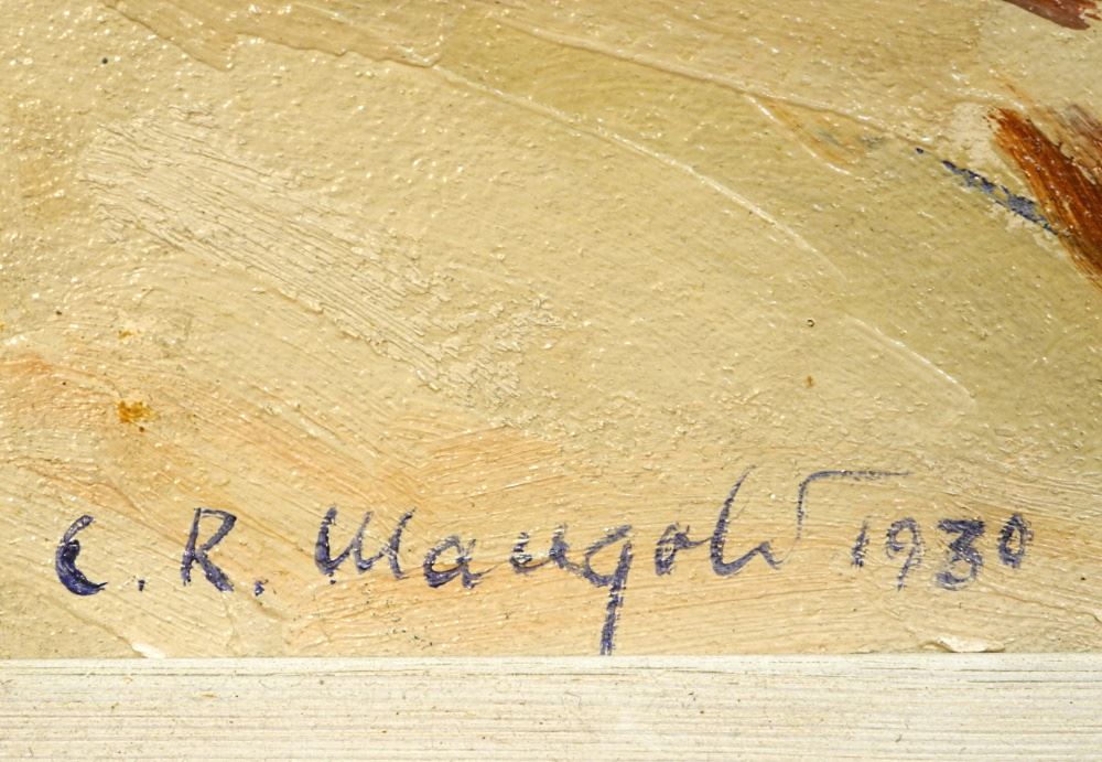 LOT 57 Oil on Board signed C.(Carl) R. Mangold 1930, 19 3/8" x 23 1/8", "River Scene". Estimate: $100 - $200 Auction Date: Tuesday, September 13 2022 at 6:00 PM