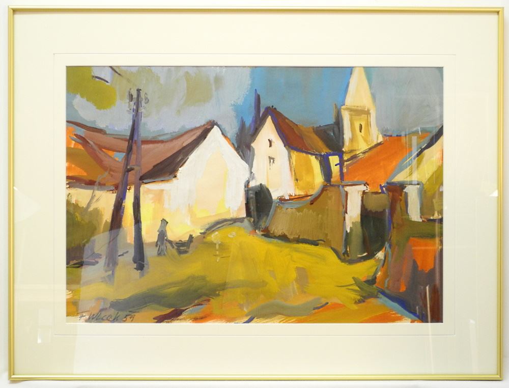 Watercolour signed F.(Franz) Wlcek 1959, 16" x 23 1/2", "Street Scene Near Vienna".