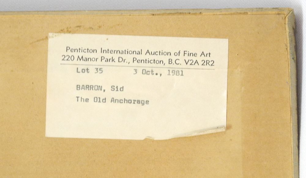 LOT 36 Gouach on Board Signed (Sid) Barron, 28" x 36", "The Old Anchorage". Estimate: $300 - $400 Sold For: $220 Auction Date: Tuesday, September 13 2022 at 6:00 PM