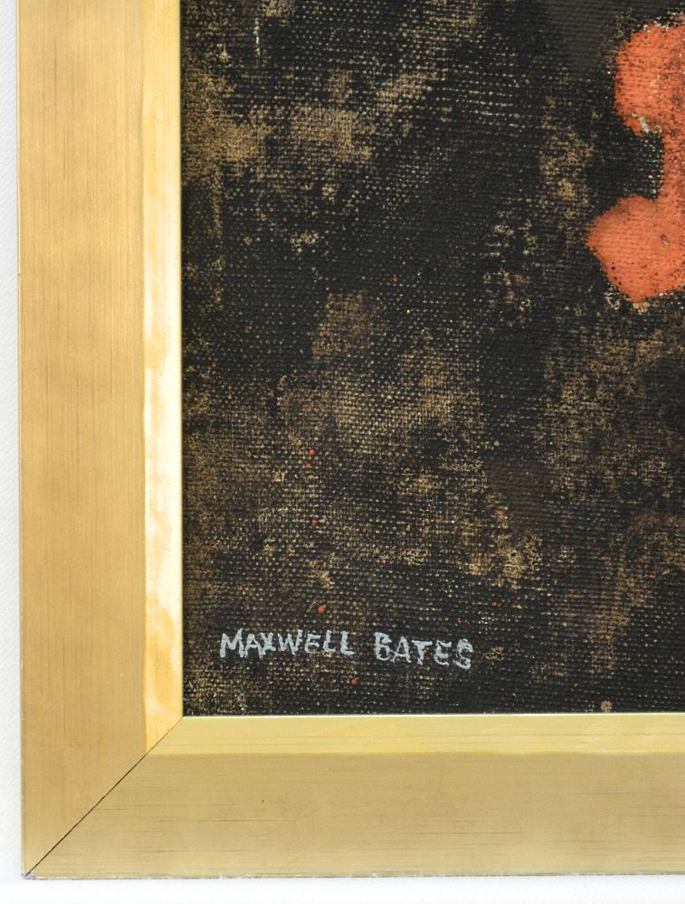 LOT 21 Oil on Board Signed Maxwell Bates, 24" x 20", "Abstract with Red". - Estimate: $1,000 - $1,500 Auction Date: Tuesday, September 13 2022 at 6:00 PM