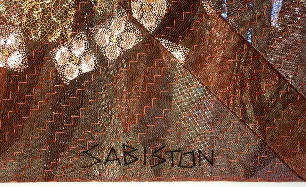 LOT 51 Tapestry Signed (Carole) Sabiston 1987, 44 1/2" x 49 1/2", "Raku Planet with Fireworks I". Estimate: $300 - $500 Sold For: $260 Auction Date: Tuesday, September 13 2022 at 6:00 PM