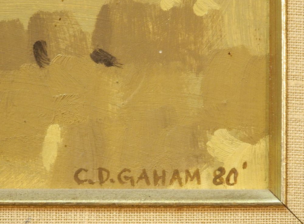 LOT 85 Oil on Board Signed C.D. Graham '80, 12" x 16", "Golden Oaks". Estimate: $100 - $200 Sold For: $500 Auction Date: Tuesday, February 07 2023 at 4:00 PM