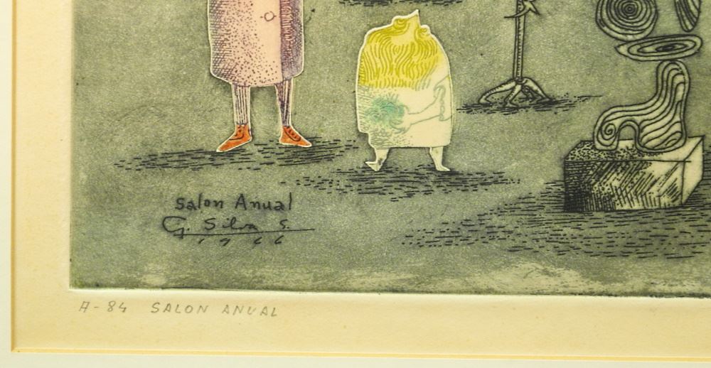LOT 128 Artist Proof Engraving Signed G. Santa Maria, 11 1/2" x 14 1/2", "Salon Anual". Estimate: $60 - $100 Sold For: $160 Auction Date: Tuesday, February 07 2023 at 4:00 PM