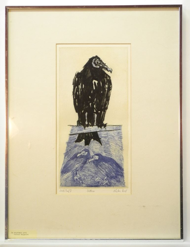 LOT 130 Woodblock Print Artist's Proof Signed Alistair Bell, "Vultures" 14 1/2 X 7 1/2". Estimate: $200 - $400 Sold For: $225 Auction Date: Tuesday, February 07 2023 at 4:00 PM