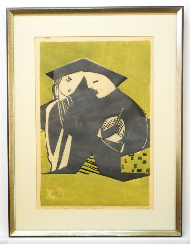 Hand Print Litho Cut Signed Molly Privett '68, 18 3/4" x 12 3/4", "I Have A Song..." #1/6.