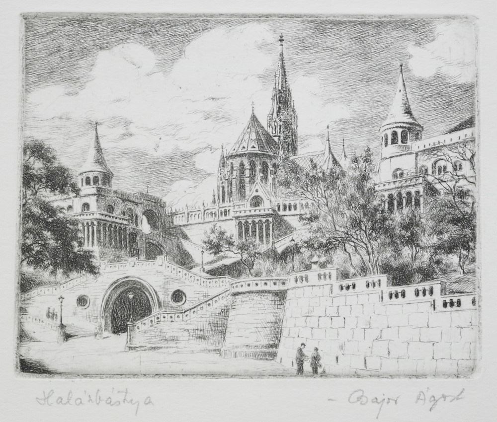 3 Etchings Signed Bajor Agost, Plates 5" x 6", Hungarian Scenes.