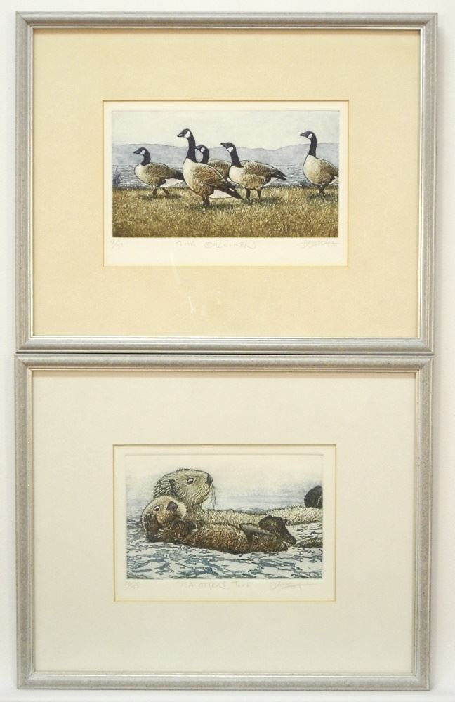 LOT 121 2 Coloured Etchings signed G.D. Markovich, 5 3/8" x 8 1/4", "Sea Otters" & "Onlookers". Estimate: $80 - $100 Sold For: $40 Auction Date: Tuesday, April 04 2023 at 4:00 PM