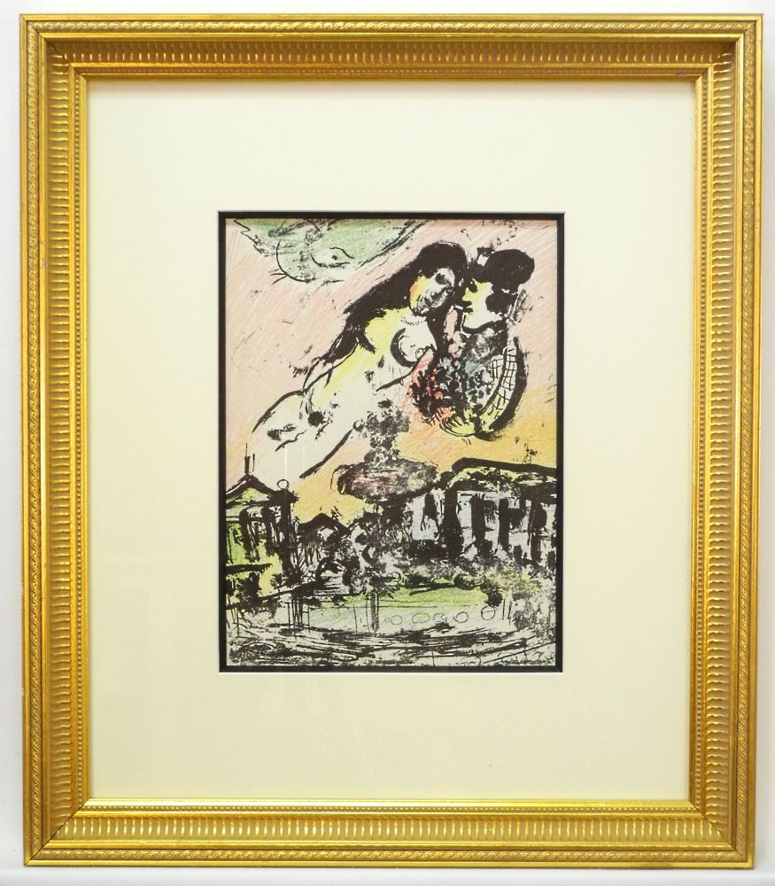 Lithograph in Colours Chagall, 12" x 9", "Le Ceil des Amoureux".