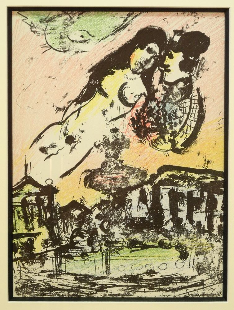 LOT 23 Lithograph in Colours Chagall, 12" x 9", "Le Ceil des Amoureux". Estimate: $200 - $400 Auction Date: Tuesday, April 04 2023 at 4:00 PM