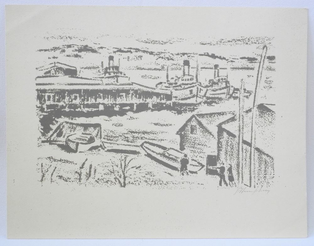Block Print Signed J.(Jack) Humphrey, 8 1/2" x 11", Untitled- Dock Scene.