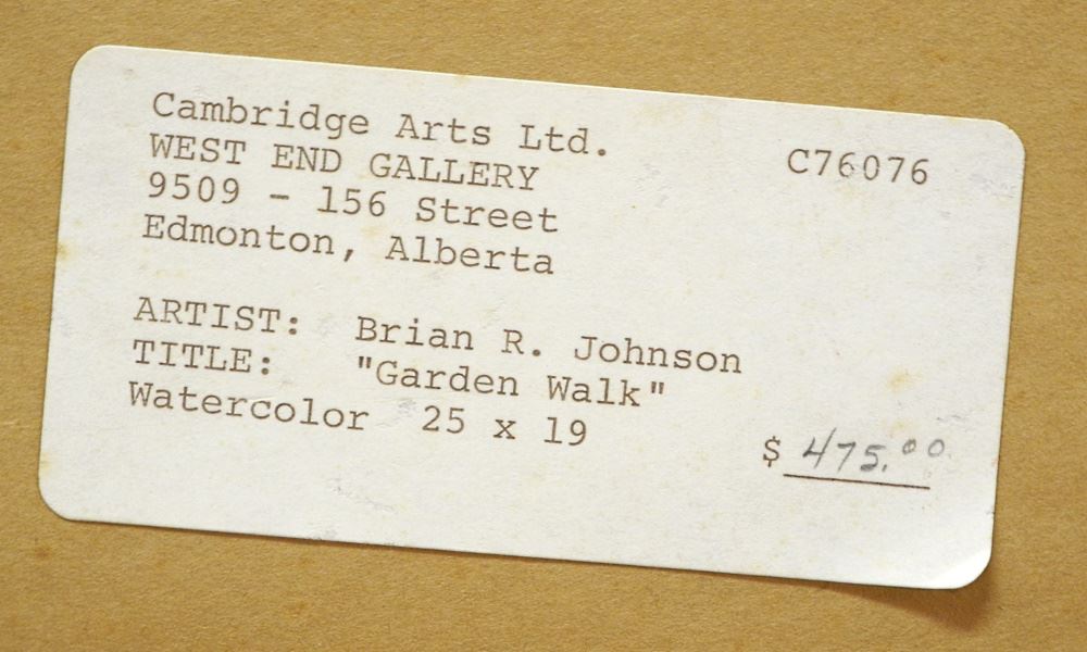 LOT 142 Watercolour Signed Brian R. Johnson, 19 1/4" x 25 1/2", "Garden Walk". Estimate: $150 - $300 Auction Date: Tuesday, June 06 2023 at 4:00 PM