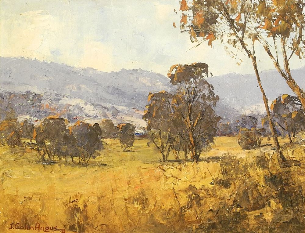 LOT 108 Oil on Board Signed J. Colin Angus 78, 14" x 18", "El Dorado Hills". Estimate: $80 - $120 Sold For: $130 Auction Date: Tuesday, October 31 2023 at 4:00 PM