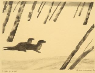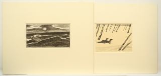 2 Pen & Ink Monogrammed TM 73 (Thoreau MacDonald), 5 1/2 x 9 3/4", "Otters" & "Seascape"-C.19