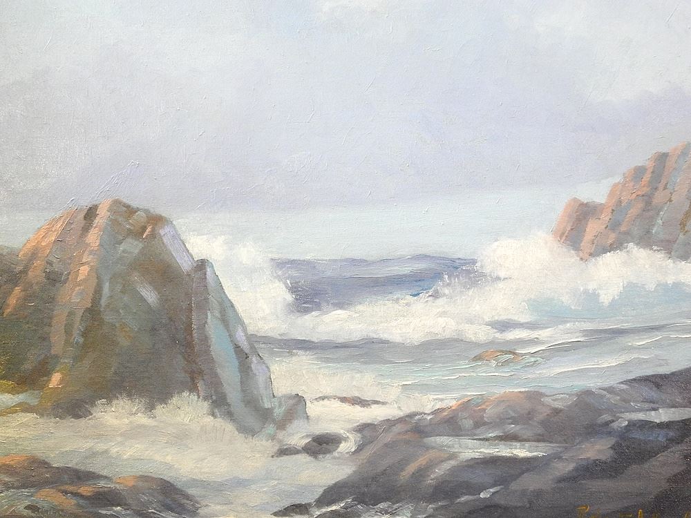 Oil on Board signed Robert Wood, 17 1/4" x 23 1/2", "Rocky Shorescape".