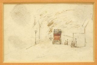 Pen & Ink Attributed to Sir Augustus Callcott, 2 1/8 x 3 3/4", "Carriage with People".