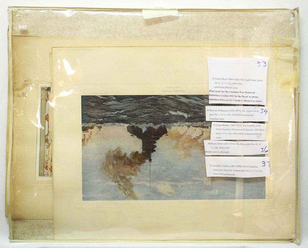 LOT 80 5 Prints all Approximately 12 x 20", 1919 Canada's Official War Artists Including Shaw, Bundy, Moi Estimate: $100 - $150 Sold For: $50 Auction Date: Tuesday, October 31 2023 at 4:00 PM