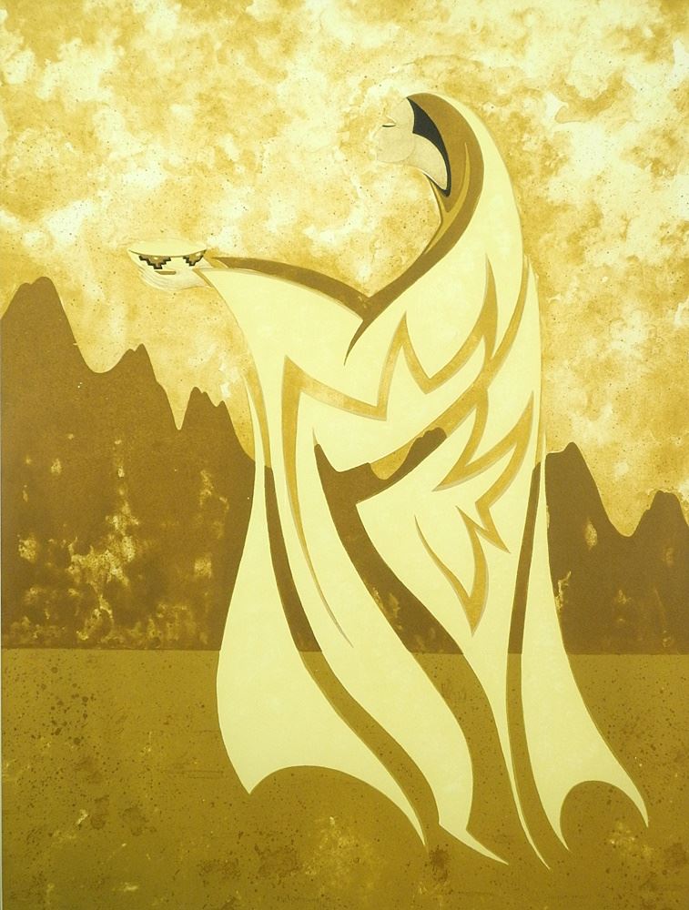 LOT 116 Serigraph 100/100 Signed Ioyan Mani (Maxine Noel), 29" x 22", "The Offering" - glazing crack. Estimate: $100 - $150 Auction Date: Tuesday, October 31 2023 at 4:00 PM