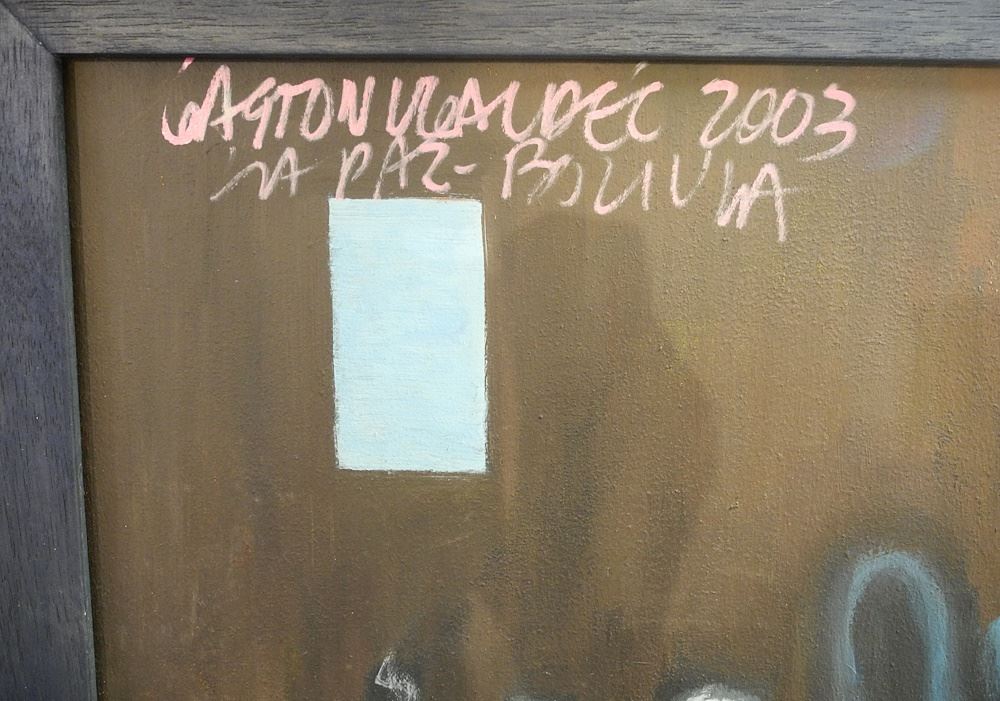Oil on Canvas signed Gaston Ugalde 2003, 51 1/2 x 64 1/2, "Morenada".