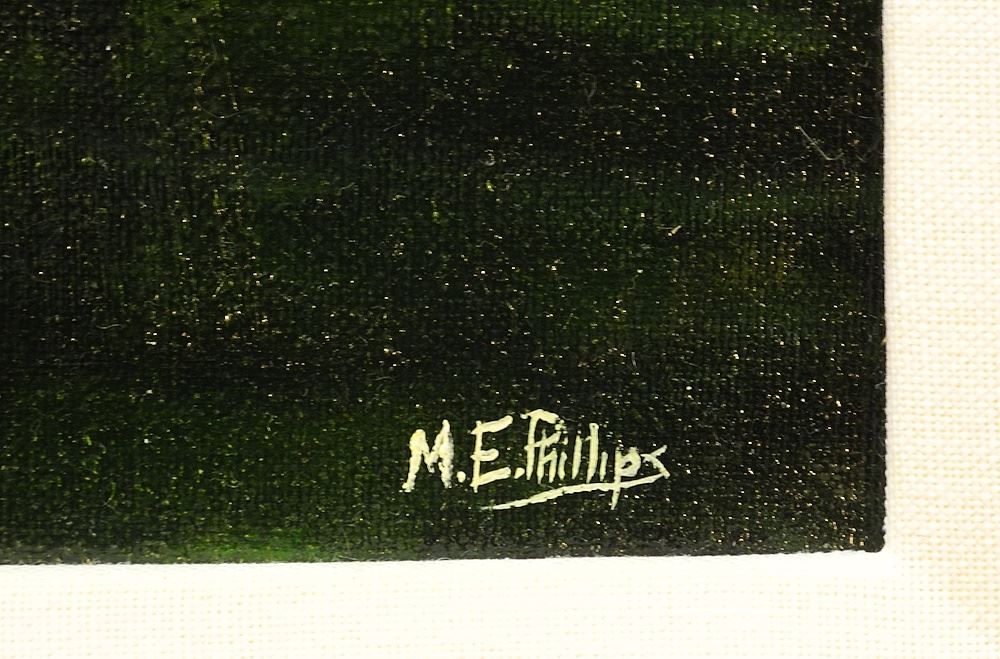 LOT 132 Acrylic on Canvas signed M.E. Phillips, 24" x 30", "By Light Adorned". Estimate: $150 - $300 Sold For: $180 Auction Date: Tuesday, October 31 2023 at 4:00 PM