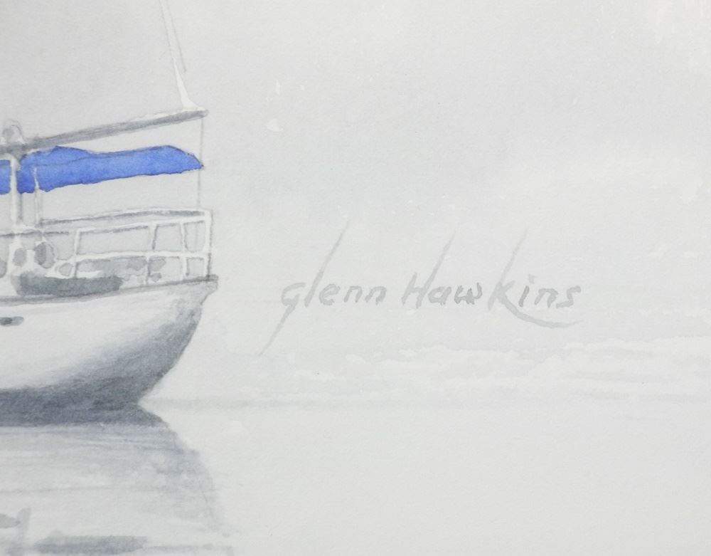 Watercolour signed Glenn Hawkins, 13 3/4" x 20 1/2", "Tranquil Sailboats".
