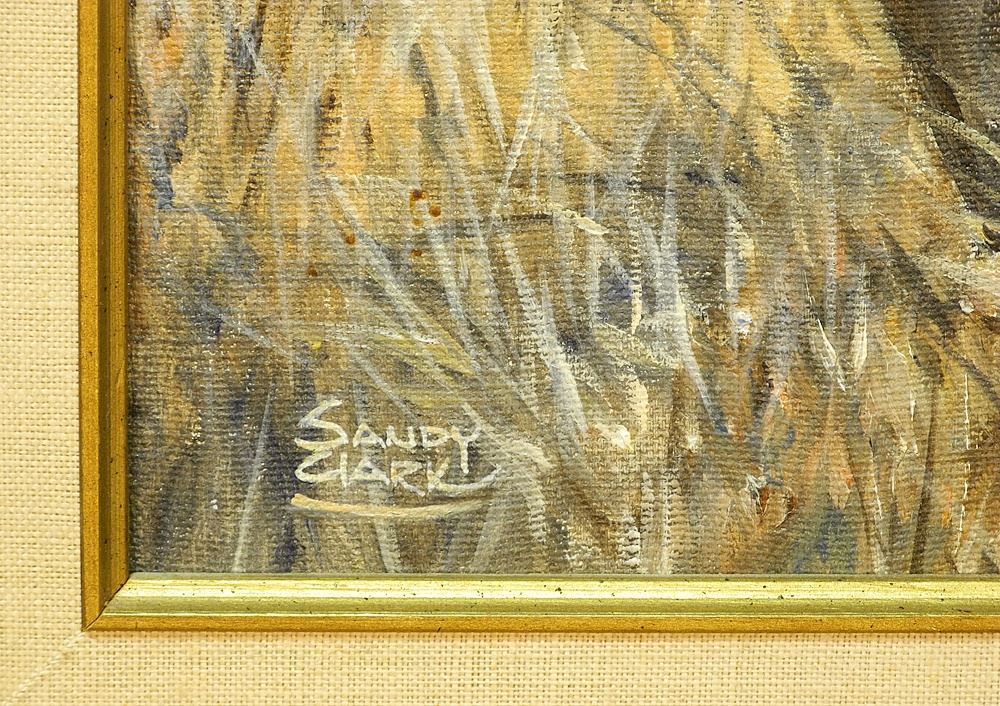 Oil on Canvas signed Sandy Clark, 17 x 23 1/4", "Battle Scene".